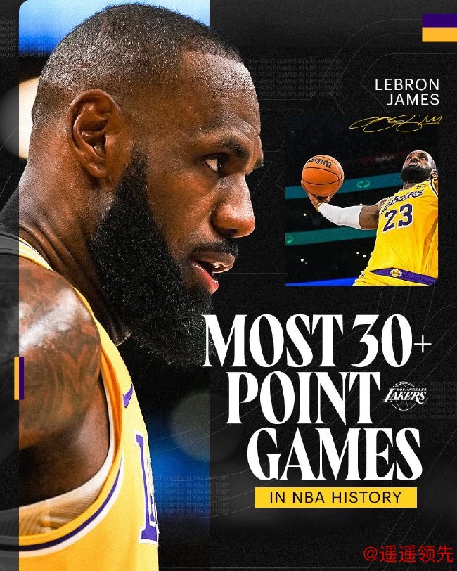北京时间1月4日,NBA常规赛,湖人119-102大胜老鹰,湖人取得两连胜升至西部第四。勒布朗-詹姆斯职业生涯得分30+次数来到563场,超越迈克尔-乔丹升至NBA历史第一!